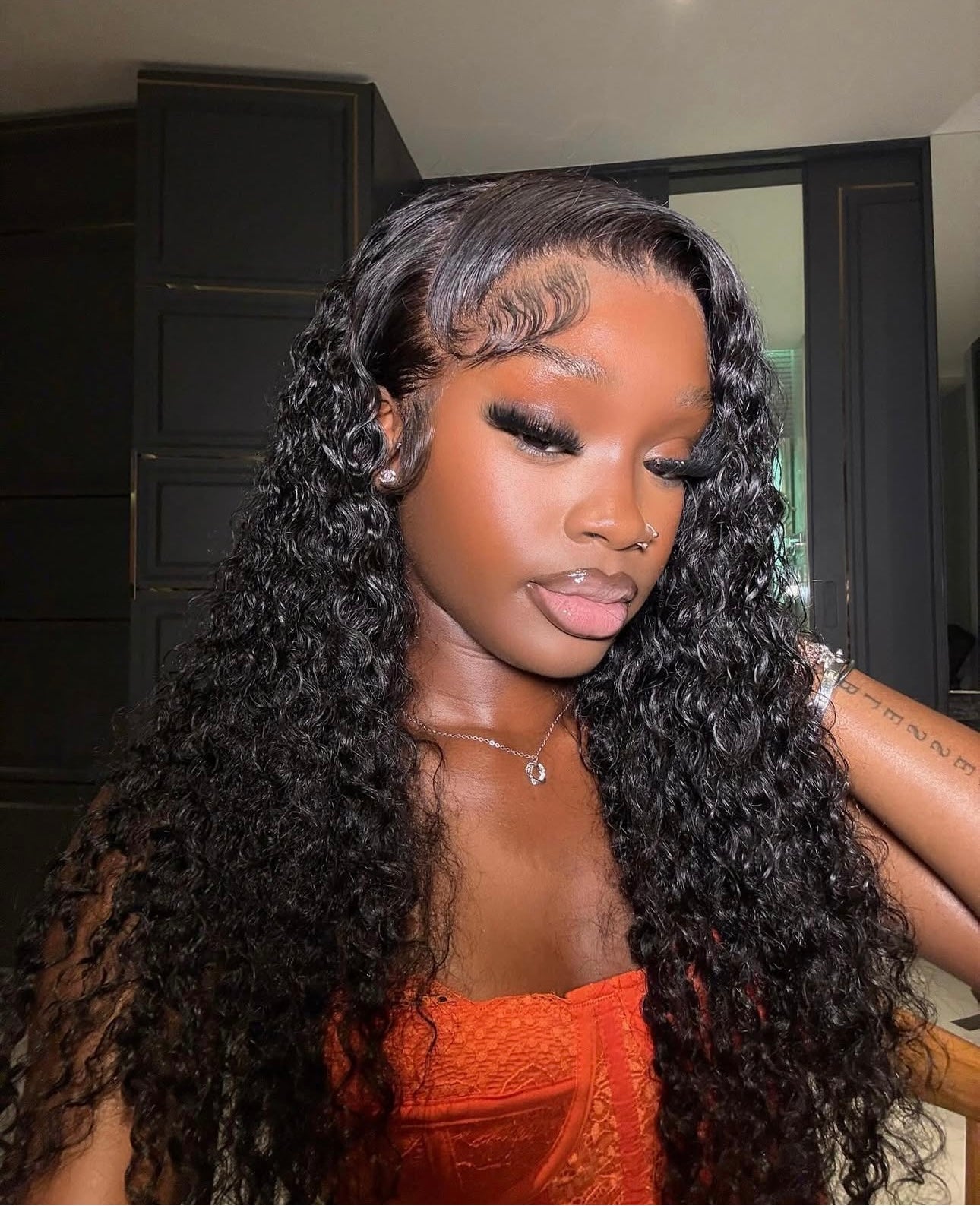 Perruque Deep Wave, Curl, Lace frontal, brésilienne, 180%
